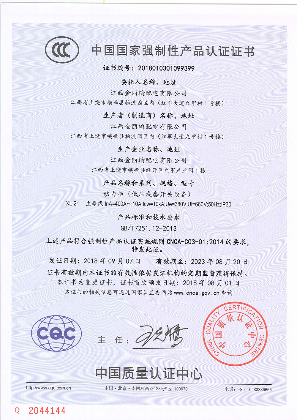 江西金丽输配电有限公司 电话:0793-5656818 传真:0793-5656967