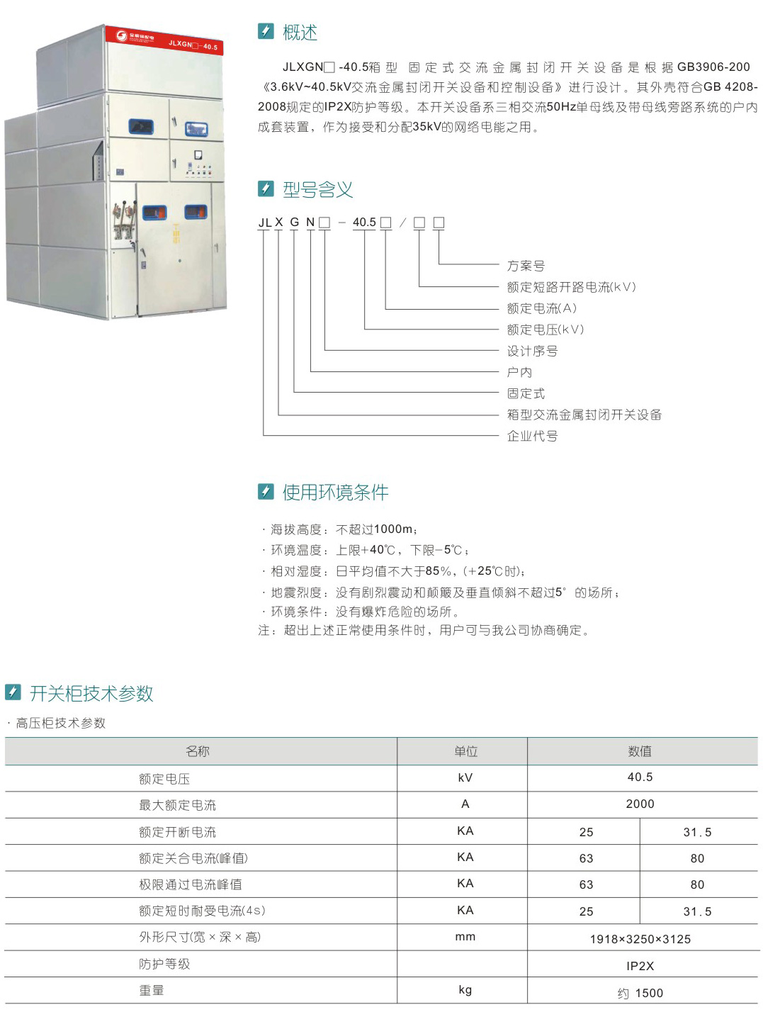 JLXGN□ -40.5 箱型固定式交流金属封闭开关设备