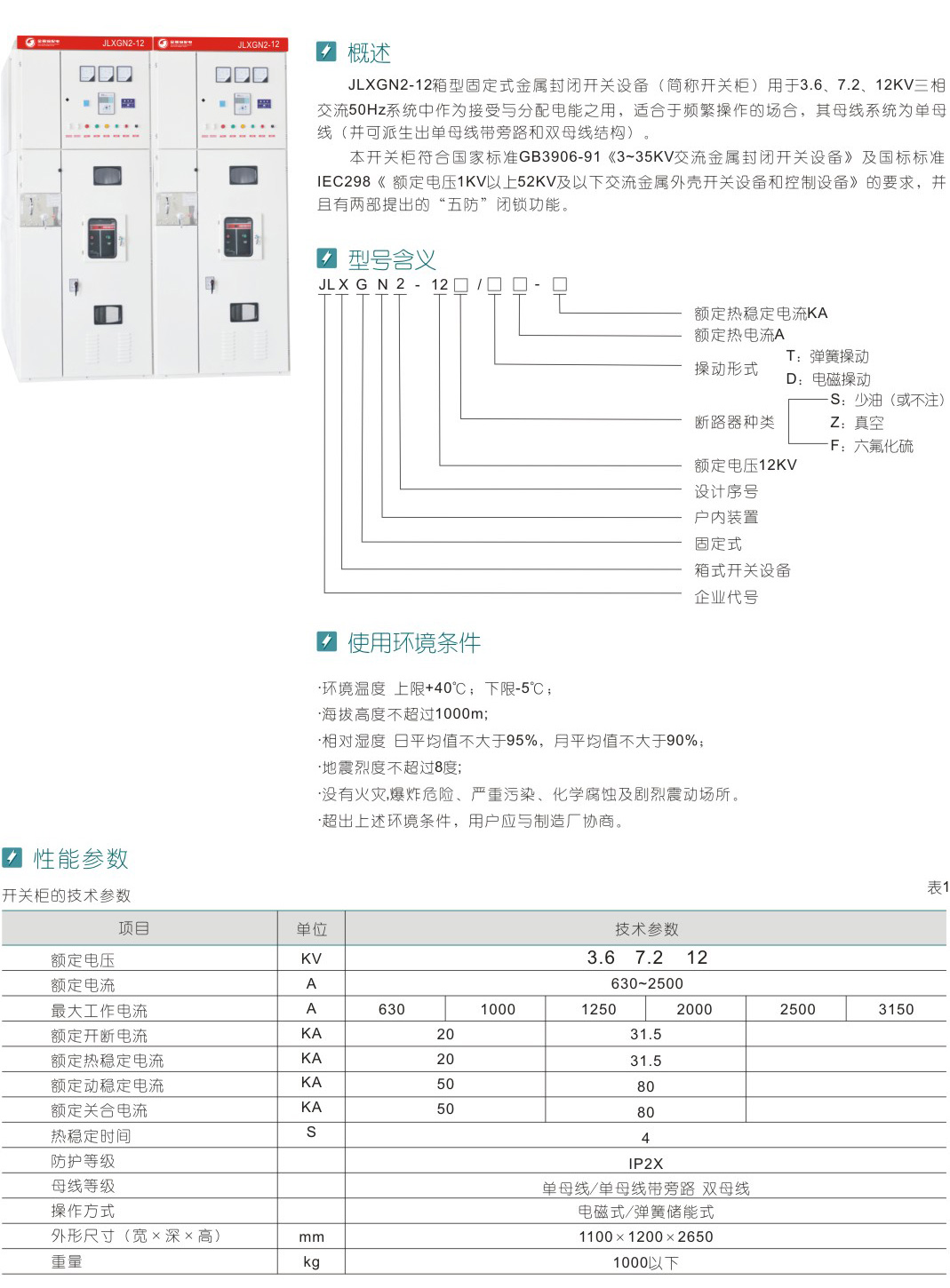 JLXGN2-12 箱型固定式交流金属封闭开关设备