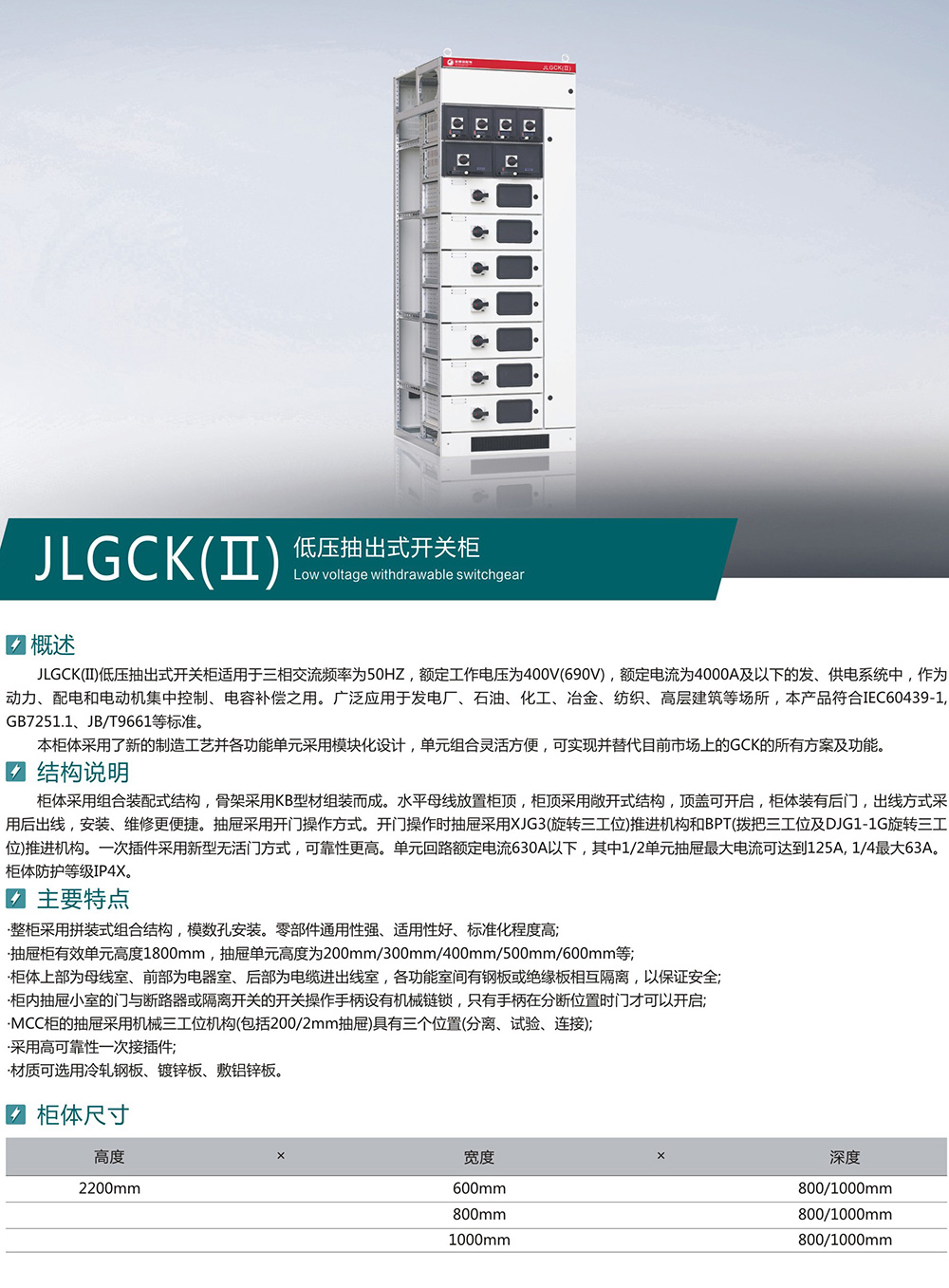 JLGCK(Ⅱ) 低压抽出式开关柜